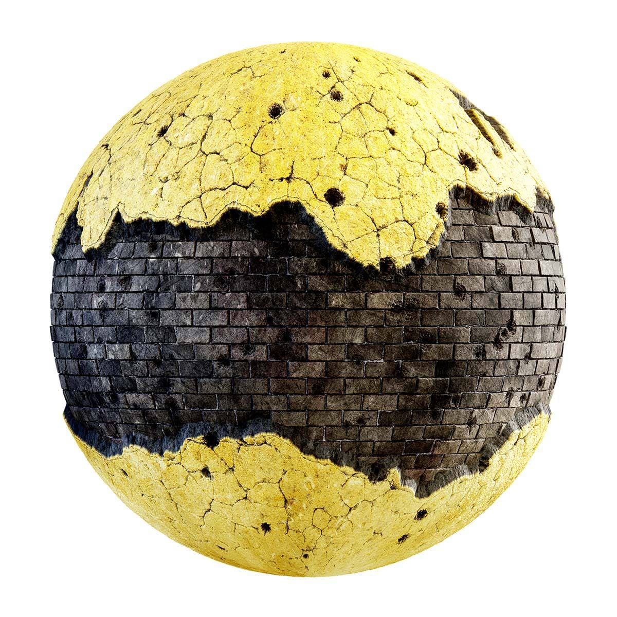 Seamless (tileable) Damaged Yellow Painted Wall PBR Texture with eight maps: albedo/diffuse, reflection, glossiness, height/displacement, roughness, metalness, ambient occlusion and normal map. Resolution: 8192x8192px and 4096x4096px.