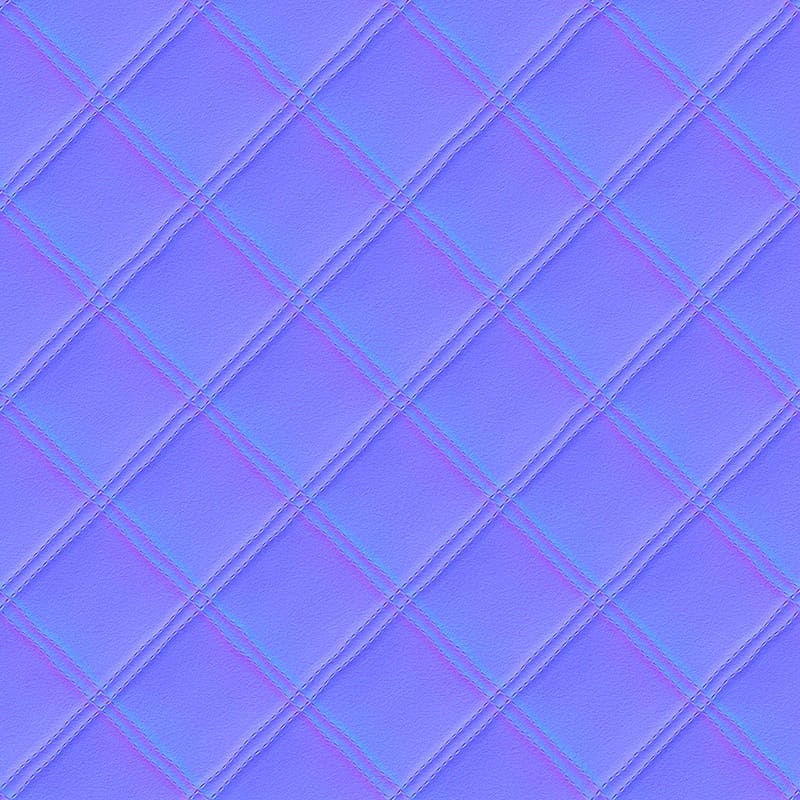 Seamless (tileable) Quilted Black Leather PBR Texture with seven maps: albedo/diffuse, reflection, glossiness, height/displacement, roughness, ambient occlusion and normal map.