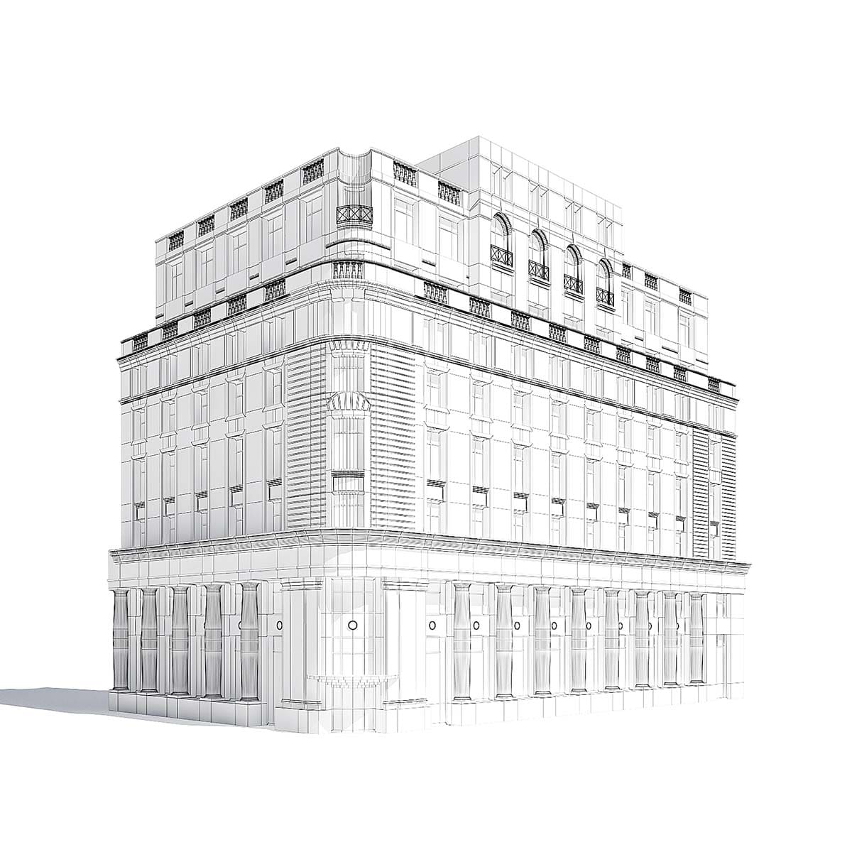 Tenement House 3d model. Compatible with 3ds max 2010 (V-Ray, Mental Ray, Corona) or higher, Cinema 4D R15 (V-Ray, Advanced Renderer), Unreal Engine, FBX and OBJ.