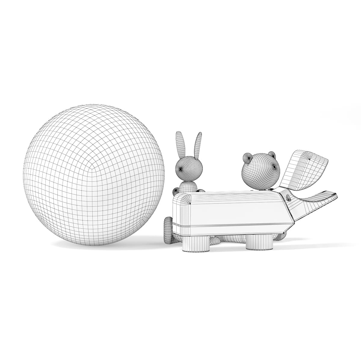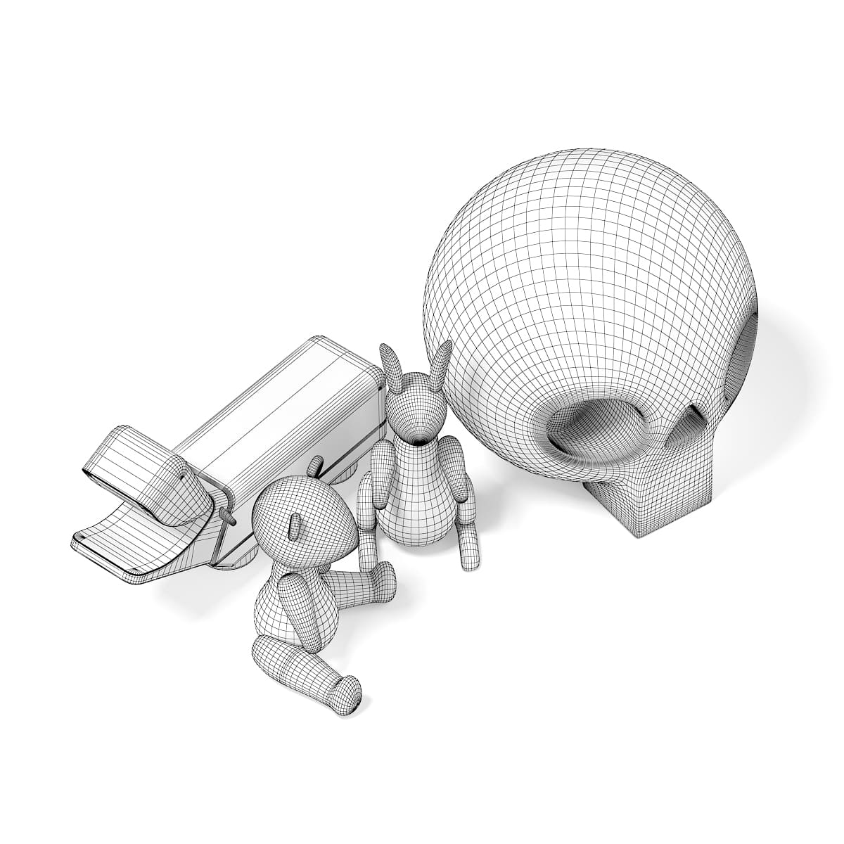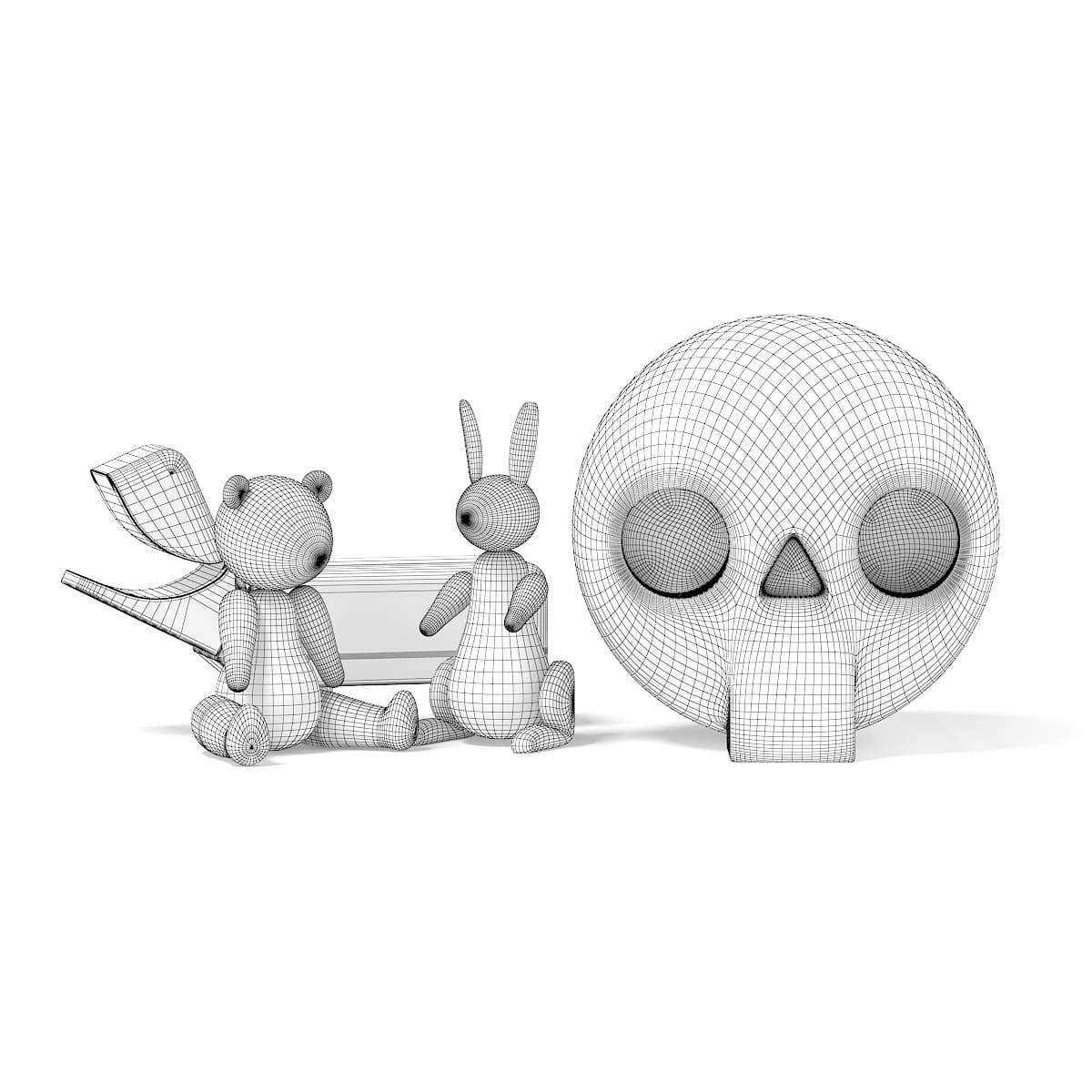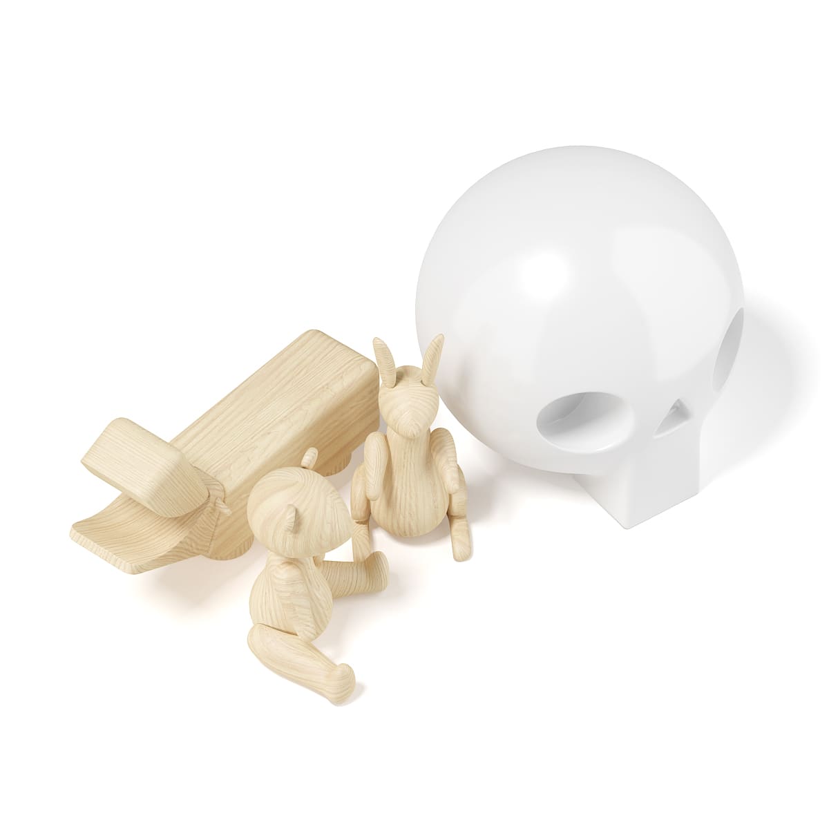3d model of decorative figures: three wooden animals and a ceramic skull. Compatible with 3ds max 2010 or higher and many others.