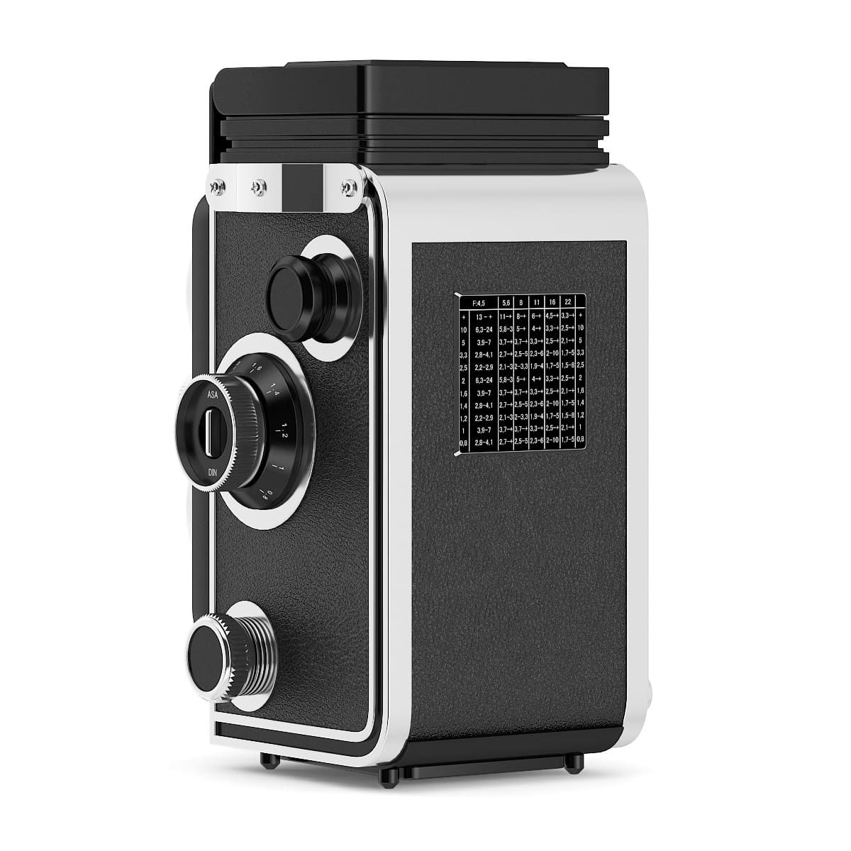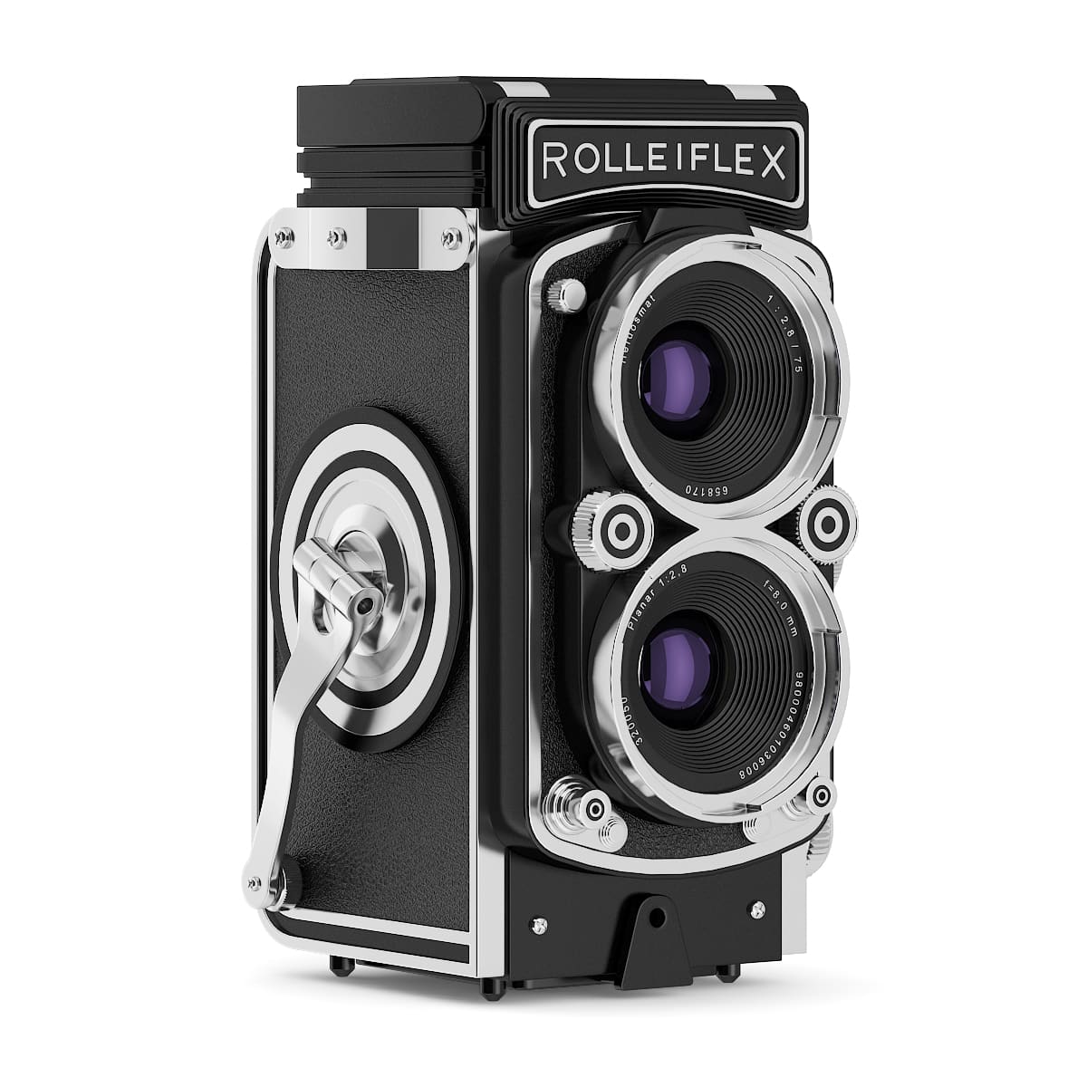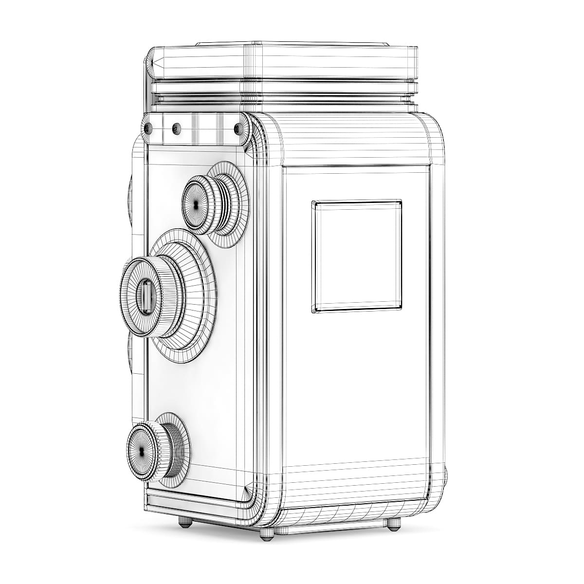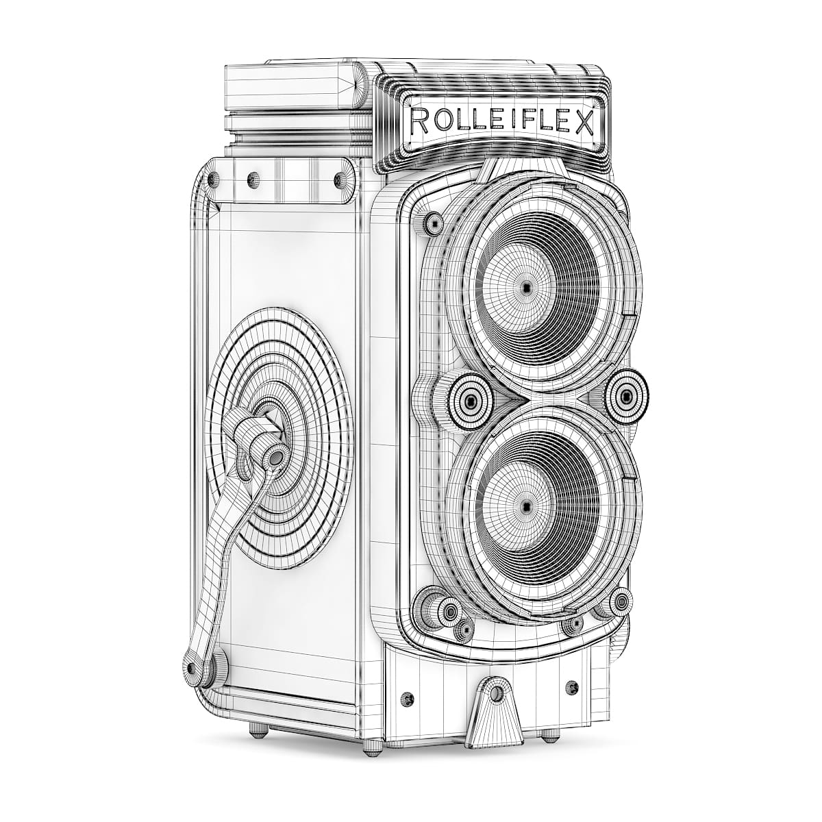3d model of antique Rolleiflex photographic camera. Compatible with 3ds max 2010 or higher and many others.